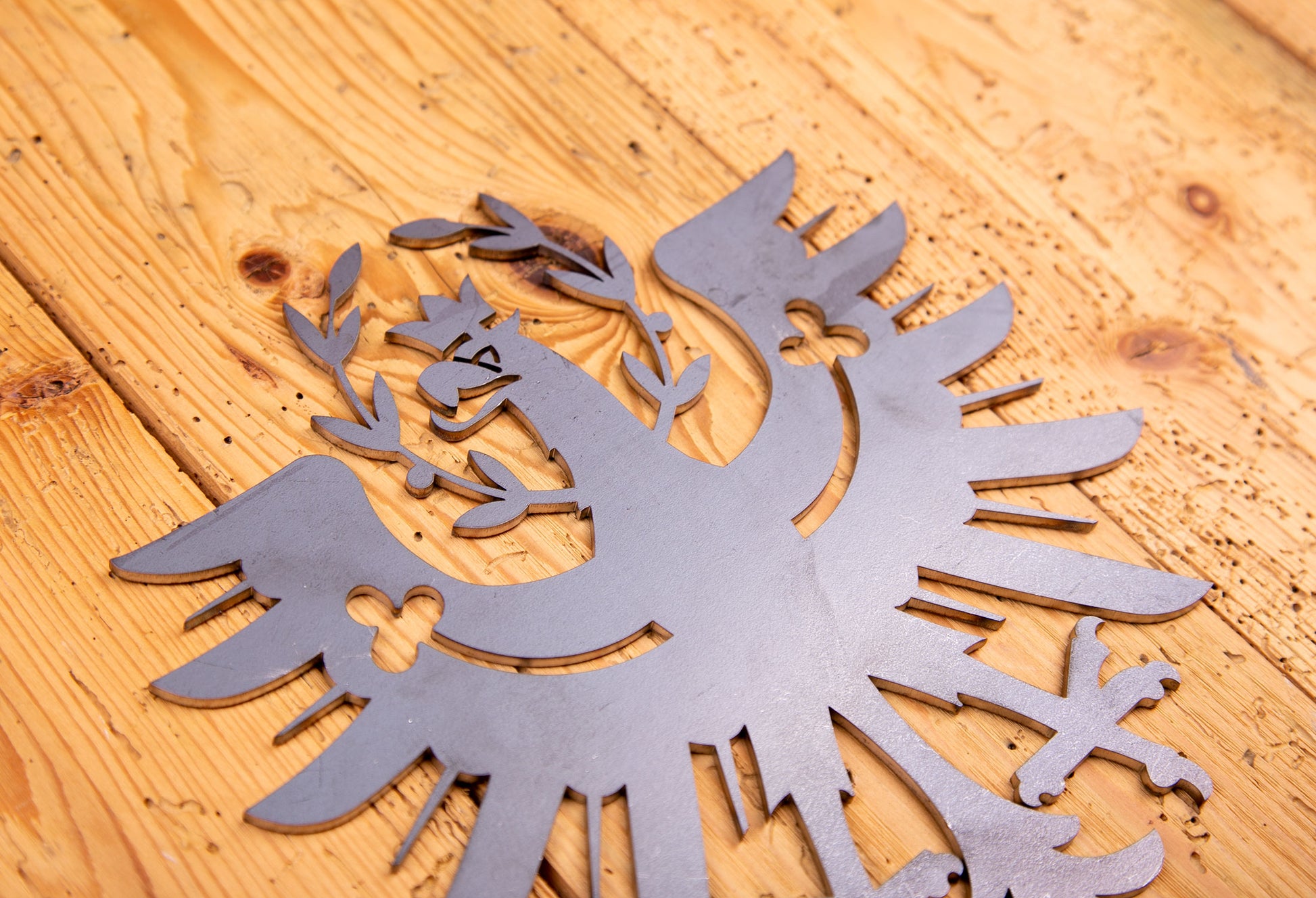 Dieser Tiroler Adler besteht aus Schwarzstahl und eignet sich ideal als Geschenk oder zur Verschönerung Ihrer Wände (indoor), Bilder und Kunstwerke.